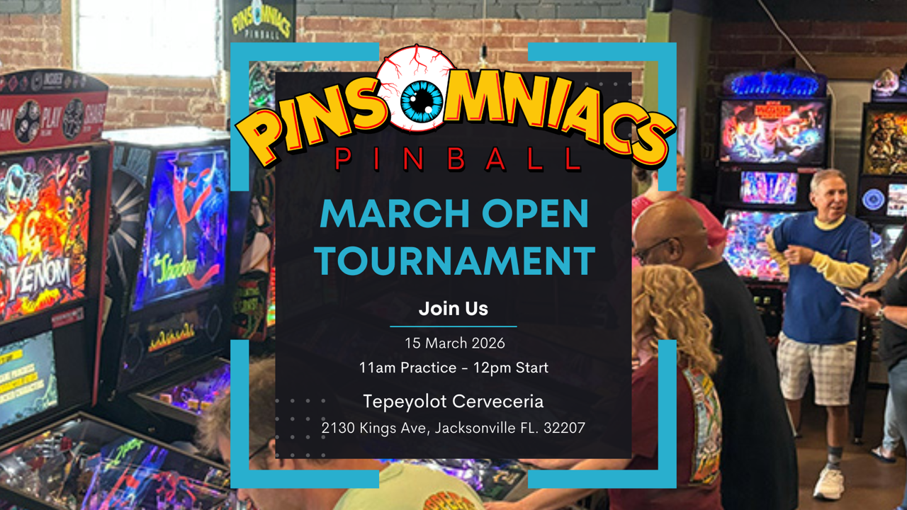 Pinsomniacs Pinball will be hosting a Bride of Pinsomniacs Women's Division tournament! This is an IFPA Pinball Tournament at Tepeyolot Cerveceria in Jacksonville, FL. Come out and play pinball with the Pinsomniacs crew. We will be playing in a head-to-head format with Pinburgh scoring (during qualifying). This is an IFPA-sanctioned tournament.